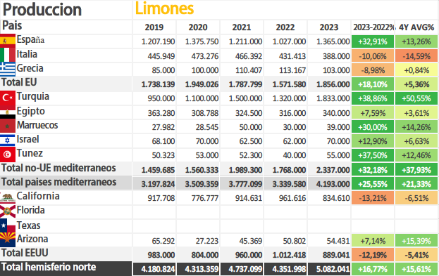 Debido al aumento del consumo que se ha producido en todo el mundo en las campañas precedentes y a la rentabilidad obtenida, el fenómeno de crecimiento en la producción del limón es un hecho global. Así, además de España, otros países como Turquía o Sudáfrica han tenido incrementos muy significativos en sus superficies en los últimos años. El país otomano ha pasado a ser una potencia en este producto, con unos números considerables, a pesar de que hace 20 años su producto era desconocido en el mercado.